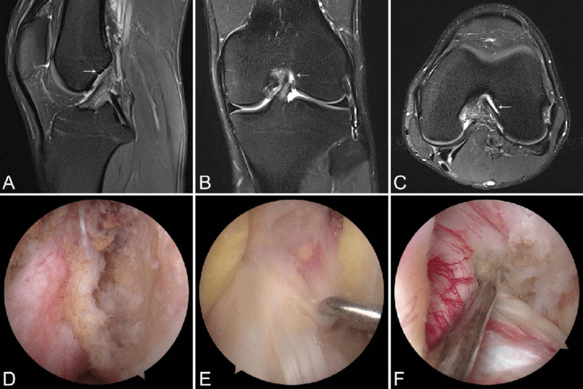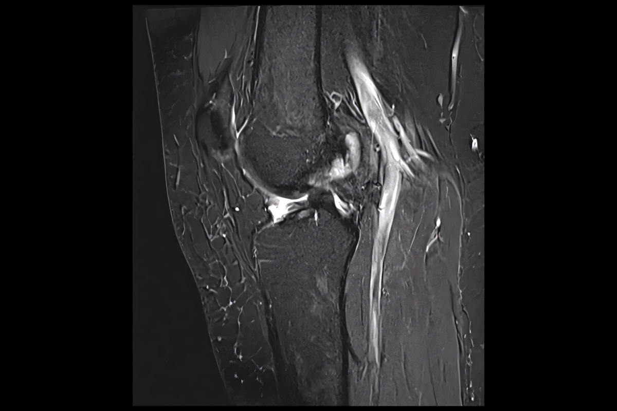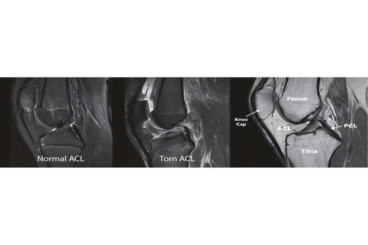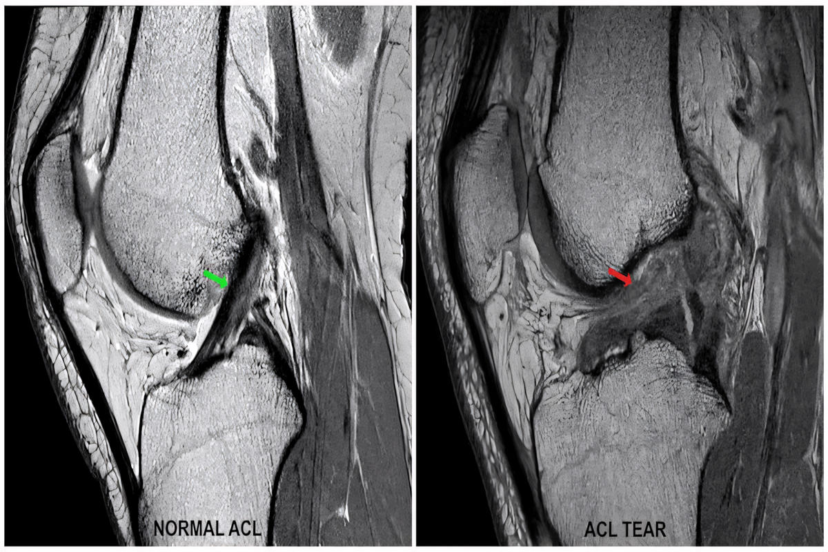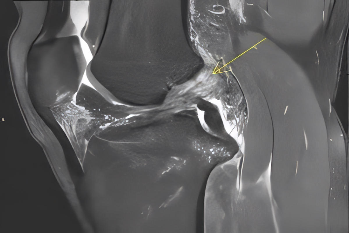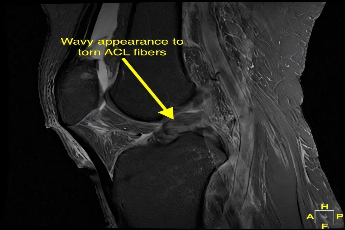 Μαγνητική τομογραφία (MRI), που επιβεβαιώνει τη ρήξη πρόσθιου χιαστού και αναδεικνύει συνοδές βλάβες σε μηνίσκους, χόνδρο ή πλάγιους συνδέσμους